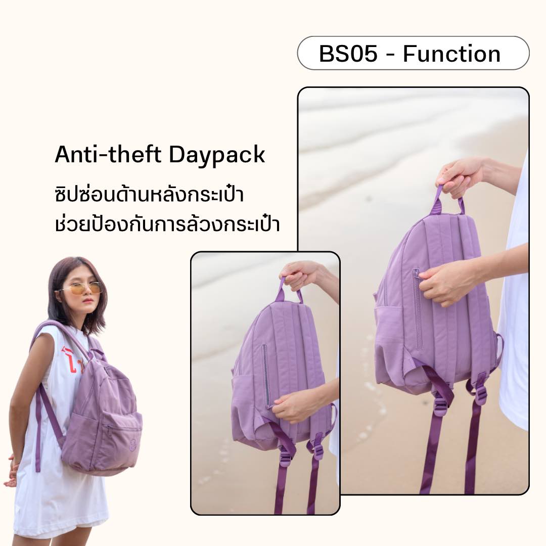 BS05 เป้สะพายหลังพาสเทล ผ้ากันนํ้า กระเป๋าสะพาย ฟังก์ชันเยอะ อยู่ทรง ไม่ย้วย ไม่หนัก